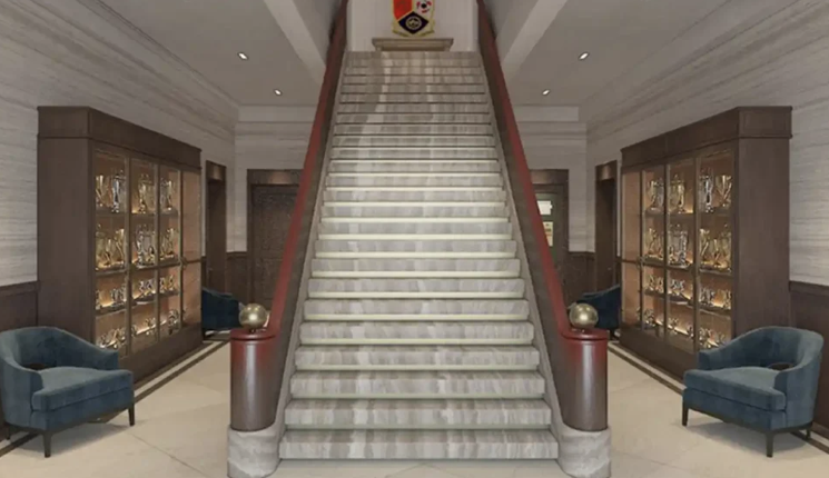 The Corporate Office reflects the illustrious history of the Cricket Club of India, blending heritage with functionality. The History Wall stands as a testament to the club’s legacy, showcasing past cricketers and presidents while leaving space for future additions. Leather chairs, braided tiebacks, and accent sash curtains complement the vintage charm of the office, while modern equipment integrates subtly into the design. The Chairman’s Office preserves its old-world character, embodying the club’s ethos of celebrating tradition while embracing progress.